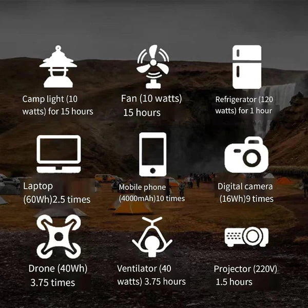 Stay charged off the grid with our reliable Solar Power Station. Equipped with high-capacity batteries, solar charging, and multiple output ports, powerful enough to charge multiple devices such as mobile phones, tablets, laptops, cameras, drones, small TVs, small refrigerators, etc.it’s perfect for camping, emergencies, or everyday backup.